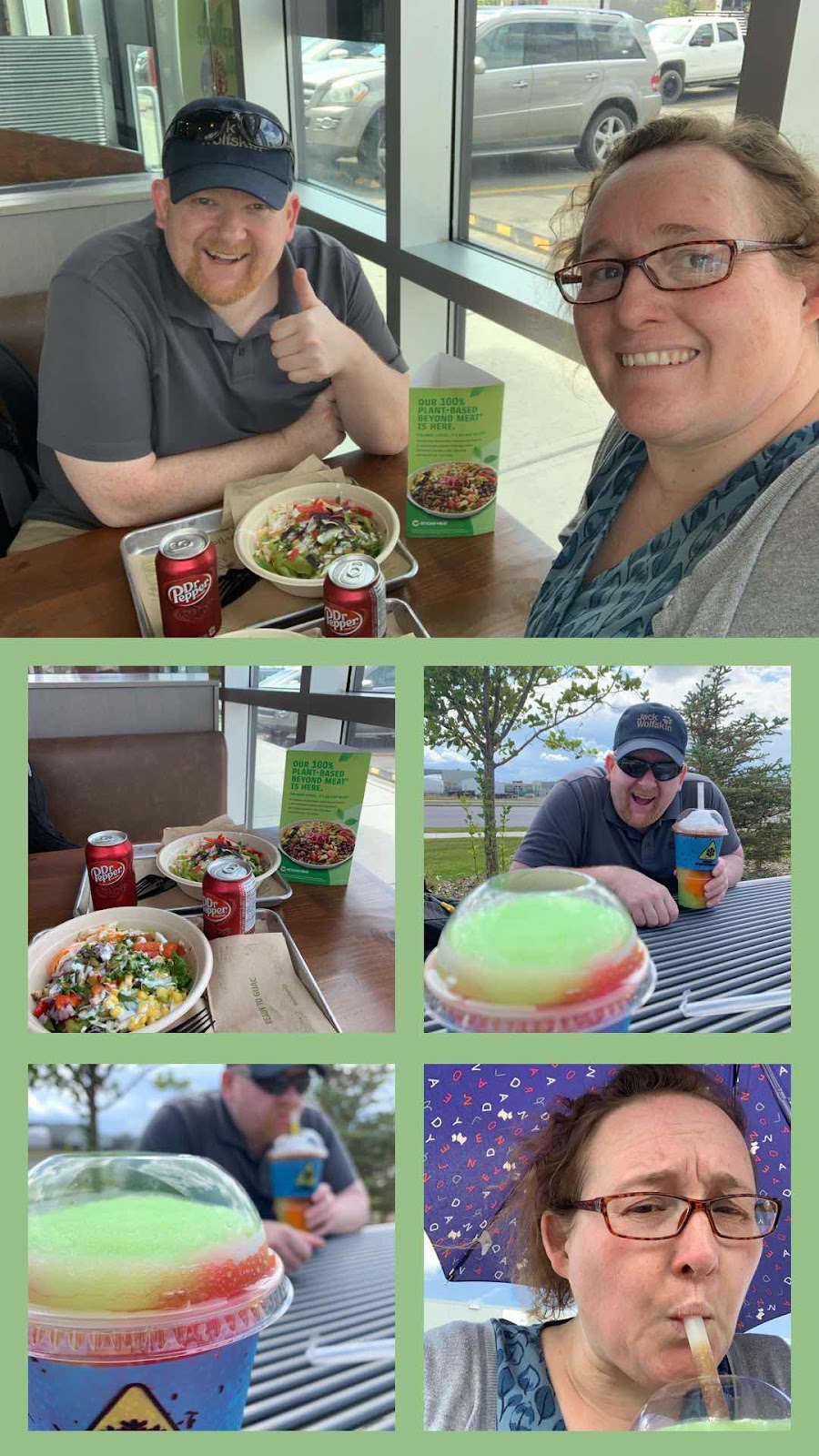 Meeting up with the locals (massive dragonfly) and enjoying a burrito bowl at a Tex Mex opposite the “Smoke House”. Should have gone in there, it would have gobbled up a few hours. Instead we got slushies.