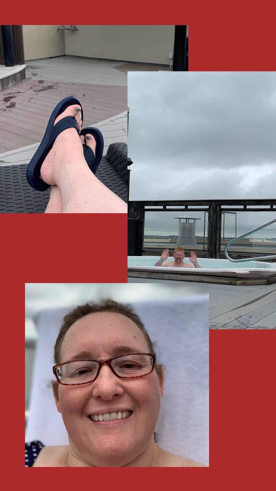 We relaxed in the hot tub, and watched the planes land and take off from the airport. It was such a nice way to spend an afternoon. While investigating the roof we noticed that a couple of streets away there was a strip mall with what looked like a Wendy’s diner. Dinner here we come.